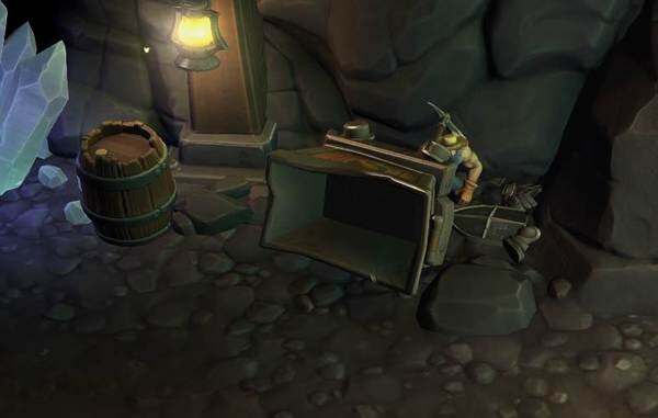 在矿洞中,矿工们采集晶体矿,这不免让人想到了星际争霸世界观中万用的“晶矿”,不知来自时空枢纽的英雄们是否乐意把矿骡借给他们呢?在这个场景我们可以清晰地看到矿车上的乌鸦标致,似乎进一步暗示了鬼灵矿与乌鸦之神的联系。