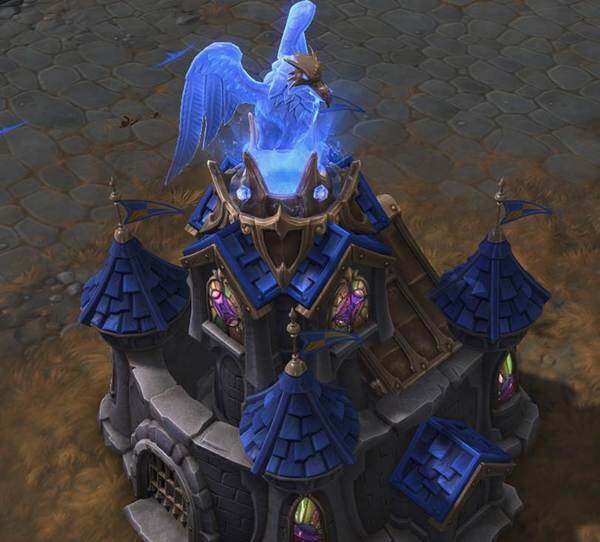 核心建筑的形象是一只站立在剑柄上的乌鸦,剑身没入石中,四周安放着火盆与盾形的装饰,看起来就像祭坛一般。
